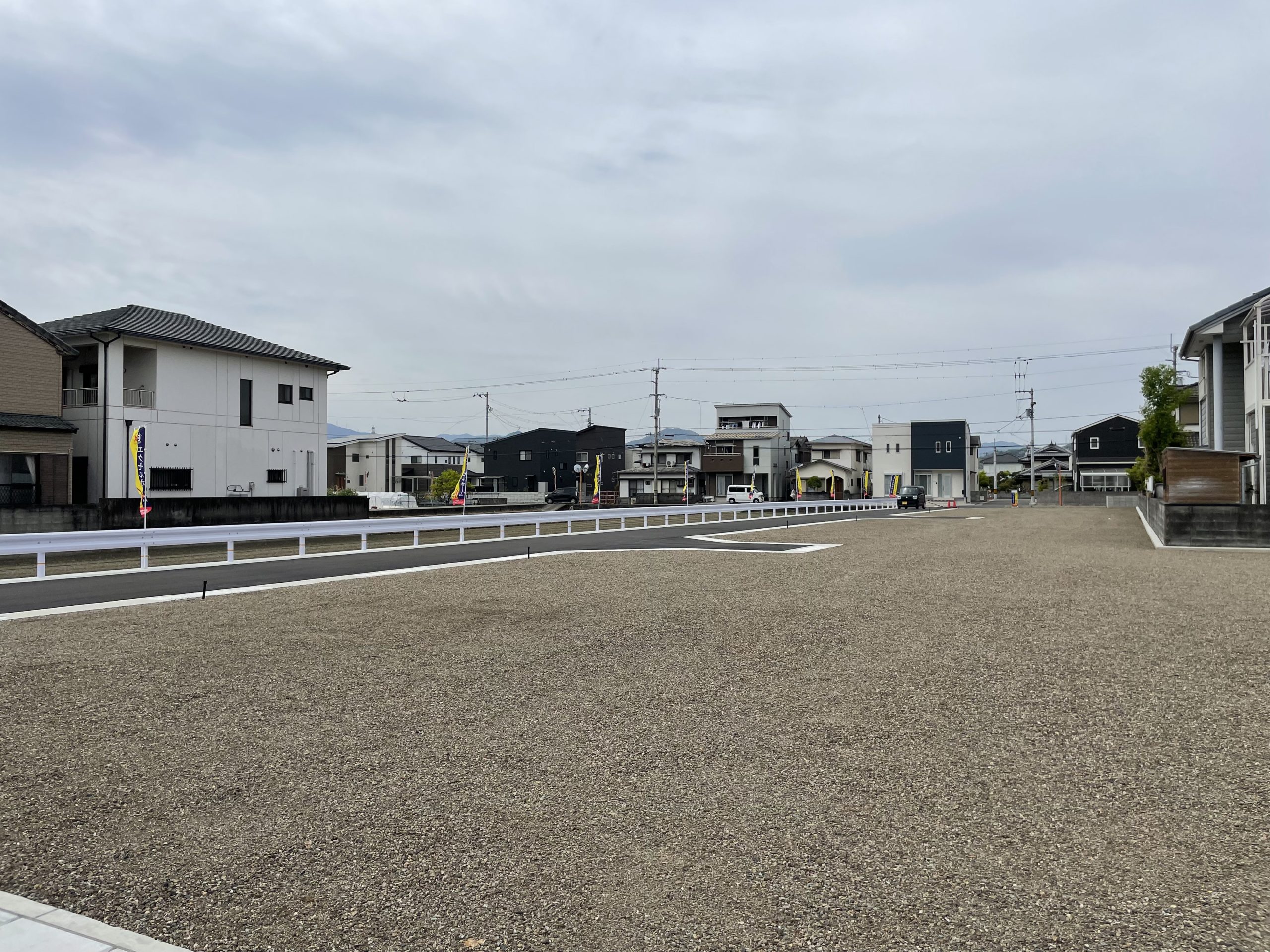 名東町2丁目分譲地には、のぼりがやわらかな風になびき遠くからでも目に入ります。