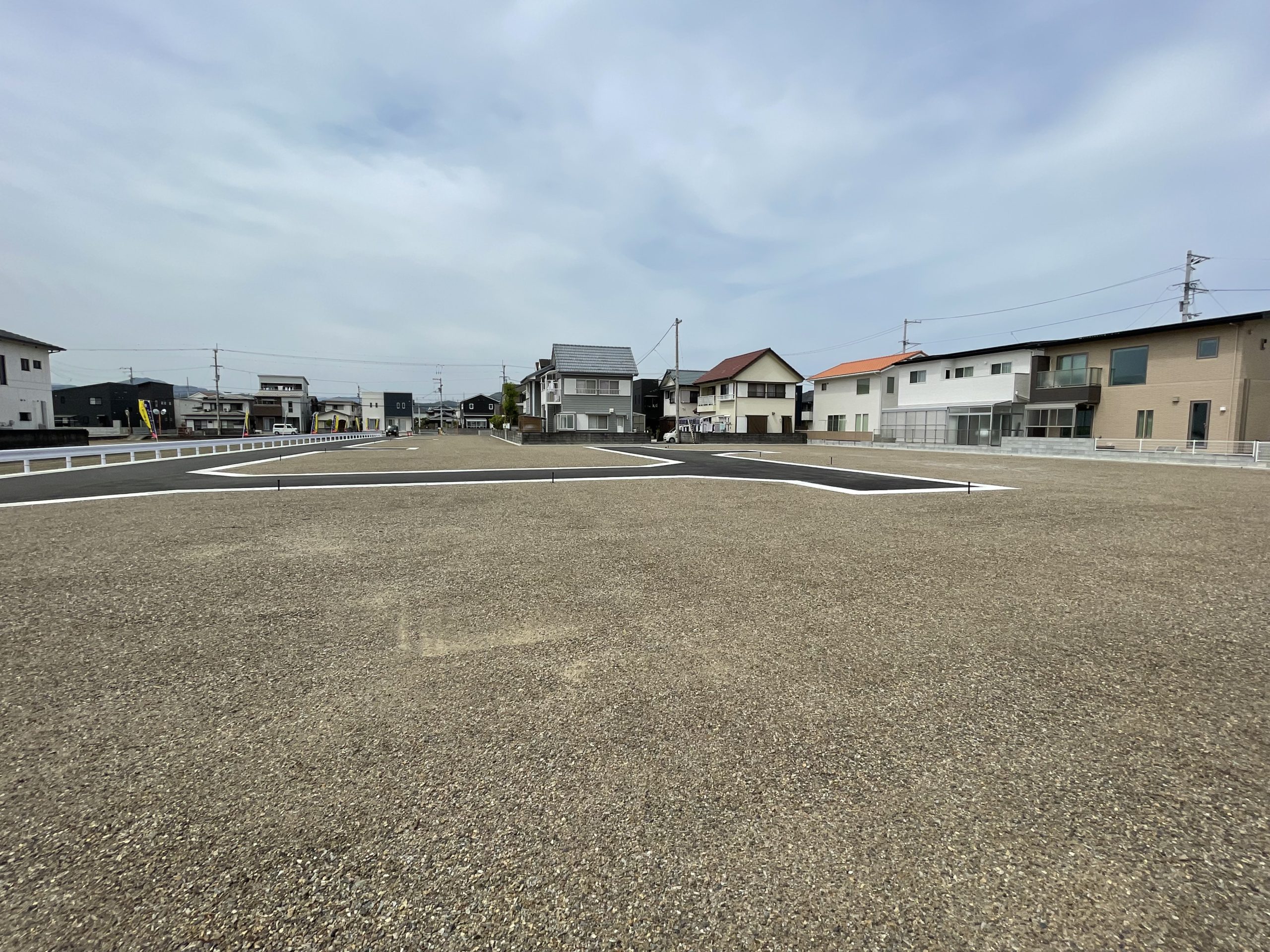 名東町2丁目分譲地には、のぼりがやわらかな風になびき遠くからでも目に入ります。
